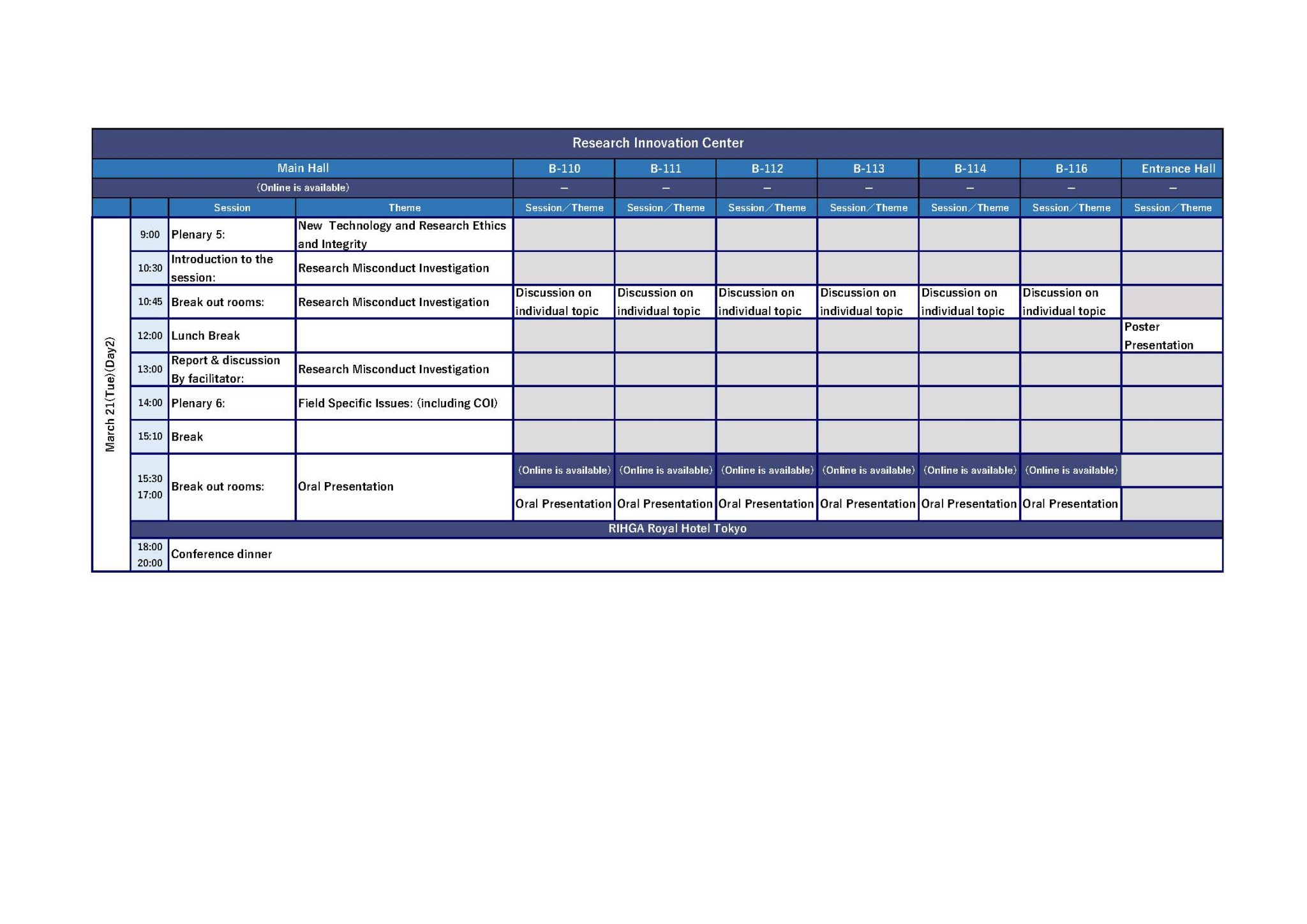 本屆主題為「促進各地對於研究誠信差異及共同目標的暸解(Fostering understanding of regional differences and common goals in research integrity)」,旨在強化現有的夥伴關係,希冀透過此次會議提高各國交流、理解與認識,並在研究誠信建立新的合作機會。在為期三天的會議中,大會針對促進科研誠信的良好作法、數據分享、工程研究與開發的道德與誠信等安排多場專題會議,亦會有來自世界各地精采的論文投稿分享,主題涵蓋研究誠信的新問題、促進跨越文化、地理與學科界線的研究誠信、管理研究不端行為的解決方案等。